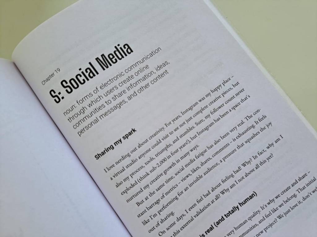 Every chapter has a tear-away page with a reminder. This is the one from Chapter S: Social Media, which captures all the points from my Manifesto at a glance. 🙂